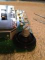3) Dann bleibt die Plastikkappe frei, die innen mit kleinen Zähnchen an dem Poti / Drehregler befestigt ist. Auch diese ist nur gesteckt, aber man kann sie nicht mit den Fingern abziehen (zumindest hab ich es nicht geschafft). Ich habe ein Plastik Trim Removal Tool verwendet aber es geht auch mit einem Flachkopf Schraubenzieher. Nicht zu sehr hebeln, sondern einfach rund herum immer ein bisschen anheben bis die Kappe abgeht. +