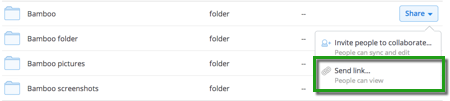 Share link from the Dropbox contextual menu