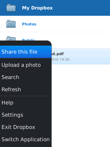 Share this file from the BlackBerry menu.