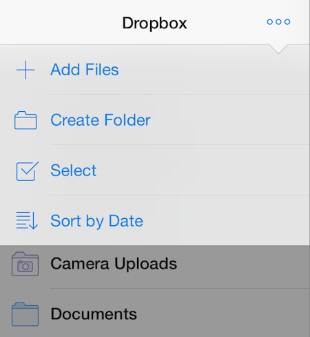 - Tap Add Files (+) from the menu. (Optional: To put the files in a new folder, tap Create Folder from the menu before uploading.)